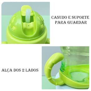 Produto: copo antivazamento com alça canudo treinamento infantil Altura: 12 cm Largura: 7 cm Comprimento: 12 cm Peso: 103g Marca: Tesla Store