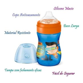 Contém: 1 copo com tampa 240 ml Modelo: Sereia ou Super Hero Copo com graduação Indicado para crianças de 12 meses ou mais 12m+ Composição: Frasco, rosca e tampa: polipropileno; Bebedor: silicone; Não expor à luz do sol, pois pode causar o envelhecimento precoce do produto Produto Livre de Bpa Retirar da embalagem antes de oferecer a criança Usar sempre sob a supervisão de um adulto