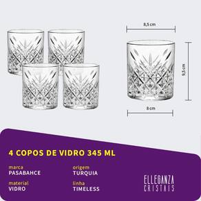 Copo Baixo De Vidro Pasabahçe Whisky 345Ml Timeless 4 Peças