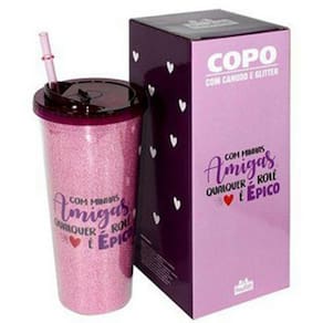 O Copo Canudo é perfeito para presentear suas amigas, produzido com materiais de alta qualidade, você pode utilizar o copo com ou sem o cando. Para evitar vazamentos carregue o produto apenas na posição vertical. Não coloque o produto na geladeiro ou congelador. Para manter seu copo bem cuidada, lave ele com água, esponja macia e detergente neutro, não ultilizar produtos químicos ou abrasivos, pois podem danificar o produto. Não vai na lava-louças nem pode ser colocado no micro-ondas. Características: - Perfeito para presentar - Capacidade para 650ml - Durabilidade e resistência - Copo na cor rosa - Pode ser utilizado com ou sem canudo Especificações Marca: Fings Store Modelo: Amigas Contém: 1 copo com tampa e canudo Medidas AxLxP : 25 x 10 x 10 cm Capacidade: 650ml Marca: Não Informado