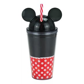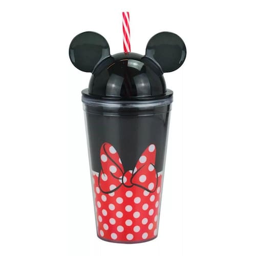 Copo de plástico com canudo capacidade para 450 ml. Tampa no formato das orelhas da Minnie. Material: plástico