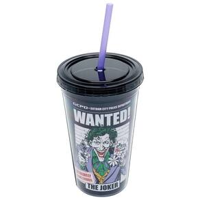 Copo com Canudo WB Joker Wanted Preto - 9,5x9,5x15,5 cm - 500 ml - Urban Brasil Que tal tomar aquela bebida preferida com estilo Fãs de Coringa com certeza se apaixonarão por esse copo
