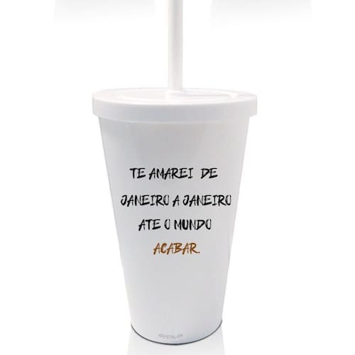 Copo Com Tampa E Canudo Branco - Até O Mundo Acabar - Para Dia Dos Namorados O Copo big de 550 ml ou copão 550 ml com tampa e canudo pode ser utilizado para diversos tipos de bebida. O copo é perfeito para presentear aquela pessoa que você ama da forma mais carinhosa possível. Não deixe de comemorar essa data tão especial com quem você ama. Especificações: Material: Poliestireno Acrílico PS , Altura: 14,5 cm, Diâmetro: 9,5 cm, Capacidade:550 ml, Cor: Branco