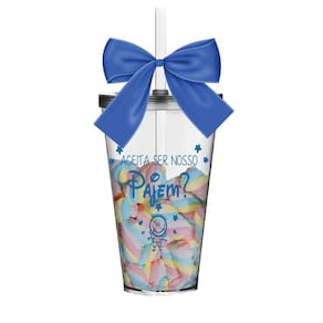 O Copo Convite é uma forma linda e deliciosa de convidar ou agradecer os pequenos por participarem de uma data tão única Com capacidade de 550 ml, você tem a opção de encher os copos com todo tipo de doce e assim encantar o futuro Pajem O sim dele será 1 Copo Convite com Tampa e Canudo Transparente com 1 Laço em Cetim Azul. Capacidade: 550 ml Material Copo: Acrílico Poliestireno Resistente Laço: Cetim Cor do Copo: Transparente Tampa e Canudo: Transparente Personalização: Transfer Aplicação Direto no Produto Quantidade: 1 Peça