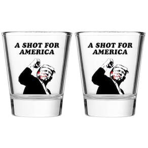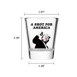 Adquira seu copo de shot Trump! Os copos de shot Trump são feitos de vidro durável. Um ótimo presente para apoiadores do Trump. - Copos de shot Trump: Pacote com 2, impressão dupla face, tire uma foto para a América! - Bem embalado: Caixa resistente com inserções de espuma. - Recomenda-se lavar à mão, feito de vidro durável. - Copo padrão de dose única: 42,5 g. - Uma ótima ideia de presente para mãe, pai, marido e esposa, presentes de elefante branco para festa de Natal.