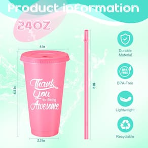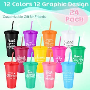 Características: Devido ao material agradável, nossos copos de viagem com canudos são leves e fáceis de transportar, não trarão muito peso para você. Além disso, também são fáceis de armazenar sem ocupar muito espaço. Nossos copos com tampas e canudos são coloridos com palavras quentes e inspiradoras, práticas e decorativas. Especificações: Material: plástico Cor: como mostrado nas imagens Tamanho: cerca de 6,89 x 3,94 x 2,36 polegadas/17,5 x 10 x 6 cm Capacidade: cerca de 680 g Peso: 58 g O pacote inclui: 24 x copos inspiradores com tampas e canudos Notas quentes: medição manual, permita pequenos erros no tamanho. A cor pode existir uma pequena diferença devido a diferentes exibições de tela. - Presentes inspiradores ideais: você receberá 24 peças de copos de plástico reutilizáveis impressos em massa com palavras calorosas e inspiradoras, que são presentes de apreciação ideais para suas mães, avós, namoradas, esposas, empregados, vizinhos, colegas, colegas de trabalho, enfermeiras, professores, irmãs e outras pessoas de quem você gosta; você pode dar presentes no Dia das Mães, aniversários, festas de inauguração de casa, Dia dos Namorados e outros dias significativos, trazendo muita surpresa and love to them - Útil e confiável: nossos copos de plástico com tampas e canudos são feitos de material plástico de qualidade, seguro e confiável de usar, resistente o suficiente para atendê-lo por um longo tempo, não é fácil de quebrar, deformar ou desbotar, e você pode usá-los com facilidade e confiança - Grande capacidade: nossos copos de plástico a granel têm cerca de 6,89 x 3,94 x 2,36 polegadas/17,5 x 10 x 6 cm (altura x diâmetro do aro x diâmetro inferior), e a capacidade é de cerca de 680 g, grande o suficiente para atender às suas necessidades de beber; este copo de plástico com canudo pode conter muitas bebidas mesmo com gelo, você pode usá-lo para segurar vinho, água, teto. a, coquetéis, suco, café quente ou gelado, champanhe, leite e outras bebidas como você gosta - Prático e exclusivo: nossos copos de viagem de plástico vêm com 12 cores diferentes, como rosa, azul claro, vermelho, roxo, amarelo e muito mais, cores brilhantes, atraentes na aparência, fáceis de chamar a atenção das pessoas e fácil para você reconhecer seu copo num relance. O canudo adota um design de rolha de anel, que efetivamente evitará que o canudo caia quando o copo for virado de cabeça para baixo, conveniente de usar - Amplamente aplicável: estes copos de plástico reutilizáveis com tampas e canudos são práticos e atraentes, com palavras inspiradoras, são presentes de apreciação ideais para mulheres, funcionários, funcionários e muito mais, e podem ser aplicados para guardar café, suco, água e outras bebidas que você gosta; Você também pode usar o copo de palha em festas, casas, escritórios, restaurantes, cafés, piqueniques, churrascos, hotéis, bares, camping e muito mais, trazendo muita comodidade