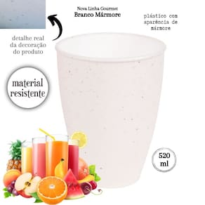 Este produto da nova linha granito traz um toque peculiar, estiloso e moderno aos seus utensílios de servir. O copo tem capacidade para 520ml. O produto é fabricado em polipropileno atóxico de alta densidade, totalmente seguro para a alimentação e livre de BPA em sua composição. A decoração no fundo do produto é permanente devido à tecnologia aplicada em sua fabricação, que não permite desbotamento e mantém os detalhes marmorizados vivos por mais tempo. O copo, inclusive, pode ser levado com segurança tanto ao freezer como microondas, sem comprometimento da integridade do material e tampouco da saúde de quem nele se serve. O produto suporta temperaturas extremas variantes entre -10º e 120º, embora não possa ser levado ao forno convencional.