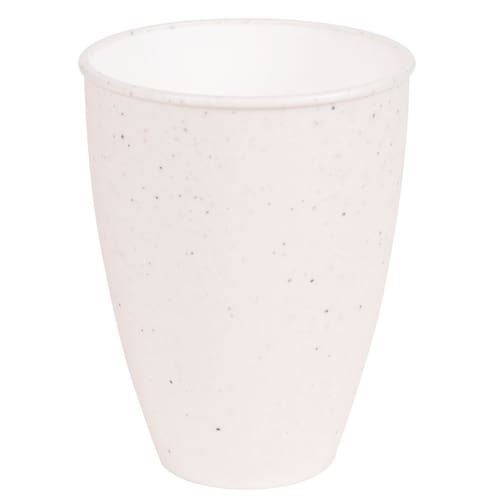 Copo de plástico para servir água, suco, refrigerante, chá, café, com decoração predominantemente cinza com leves traços/ranhuras pretas por toda a peça, que traz uma aparência de granito super requintada ao produto.