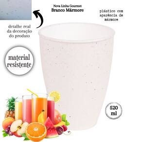 Este produto da nova linha granito traz um toque peculiar, estiloso e moderno aos seus utensílios de servir. O copo tem capacidade para 520ml. O produto é fabricado em polipropileno atóxico de alta densidade, totalmente seguro para a alimentação e livre de BPA em sua composição. A decoração no fundo do produto é permanente devido à tecnologia aplicada em sua fabricação, que não permite desbotamento e mantém os detalhes marmorizados vivos por mais tempo. O copo, inclusive, pode ser levado com segurança tanto ao freezer como microondas, sem comprometimento da integridade do material e tampouco da saúde de quem nele se serve. O produto suporta temperaturas extremas variantes entre -10º e 120º, embora não possa ser levado ao forno convencional.