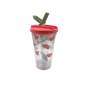 Copo de plástico Infantil Desenho Frutas com Canudo 450ML