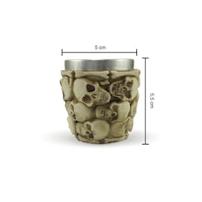 Copo shot caveira, lindo copo com seu interior em aço inox e exterior em resina, confeccionado de modo semi-artesanal, ideal pra quem gosta de tomar um shot com família e amigos, pode ser usado como decoração por conta do fino acabamento e é uma ótima opção para presentear familiares e amigos.