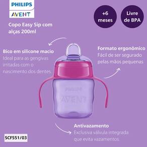 Escolha a inteligência e o cuidado da Philips Avent para o bem-estar do seu bebê. O Copo Easy Sip é mais do que um simples utensílio; é um passo em direção à independência dos pequenos, com a qualidade e confiança que só a Philips Avent pode oferecer. Disponível para bebês a partir de 6 meses, com capacidade de 200ml, é a escolha ideal para acompanhar cada sorriso e cada nova descoberta. Philips Avent, inovando para o crescimento saudável do seu bebê.