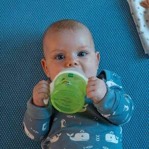 O Copo de Transição Starter Night também conta com um design ergonômico, perfeito para as mãos pequenas dos bebês. Além disso, é compatível com peças de todos os copos da Mam, garantindo a sua durabilidade e versatilidade.