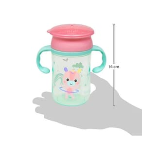Esse copo é indicado para crianças a partir de 12 meses. Para utilizar, basta inclinar o copo e sugar lentamente. Ele é fácil de limpar, sendo recomendado lavar à mão com água e sabão neutro.