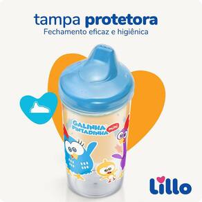 Com capacidade para até 320ml, seu bebedor rígido não rasga com as mordidas dos dentinhos das crianças e, sua tampa protetora é ideal para fechar o copo e manter o bebedor protegido durante o transporte. Também possui sistema antivazamento que impede que o líquido saia sem que a criança sugue, evitando a bagunça. É totalmente desmontável, com bocal largo que facilita sua limpeza e higienização. Totalmente livre de Bisfenol-A.