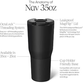 Nosso NAV 992 g é feito para a vida em movimento. É compatível com porta-copos, 100% à prova de vazamento para bebidas quentes, frias e carbonatadas e nosso isolamento BevGuard garante que suas bebidas favoritas permaneçam na temperatura perfeita até o último gole. - Totalmente à prova de vazamento e suporte de copo: a caneca de viagem BrüMate Nav é a única caneca de viagem isolada de 992 g, 100% à prova de vazamentos, adequada para viagens, projetada para manter suas bebidas quentes, frias e gaseificadas favoritas na temperatura perfeita em movimento. - Perfeita para bebidas quentes, frias e carbonatadas em movimento: inclui a tecnologia BevLock com a primeira tampa de bloqueio totalmente à prova de vazamento do mundo, para que você possa levar sua bebida aonde quer que vá sem se preocupar com vazamentos. Inclui uma base antiderrapante para que suas bebidas permaneçam no lugar sem deixar anéis em móveis ou mesas de escritório. - Mais de 24 horas frias, 6 horas quentes: graças ao nosso isolamento BevGuard, seu nav manterá suas bebidas favoritas geladas por mais de 24 horas e quentes por mais de 6 anos sem qualquer sabor metálico. - ACABAMENTOS SEGUROS PARA LAVA-LOUÇAS: Todos os acabamentos podem ser lavados na máquina de lavar louça, exceto o leopardo dourado e o onyx leopard. - Garantia vitalícia: Apoiado por nossa garantia vitalícia, o Nav será seu companheiro de bebida favorito para o longo prazo. - Sistema de rosca OctaLock: a inovadora tampa OctaLock simplifica a abertura e o fechamento do seu navegador, oferecendo 8 posições convenientes para beber com nosso design de rosca com patente pendente. Basta alinhar a tampa ligeiramente à esquerda da posição desejada, pressionar para baixo e girar para a direita para travá-la com segurança. Para remover, gire para a esquerda até parar e, em seguida, levante. Sem esforço e preciso, sempre.