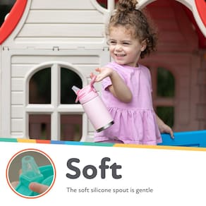 - Bico macio sem derramamento: o bico de silicone macio é suave para gengivas e dentes; o topo do copo é projetado para evitar gotejamentos e derramamentos e mantém o bico protegido quando a tampa é fechada