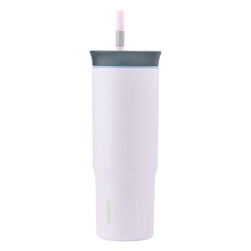 Owala Copo de viagem isolado de camada tripla de aço inoxidável com tampa resistente a derramamentos e canudo, sem BPA, 680 g, cinza/roxo (Bunny Hop) - Tampa 2 em 1 para gole - Palha removível e reutilizável - Resistente a respingos, aço inoxidável, isolamento de parede dupla - Livre de BPA e ftalatos - Copo para lavar à mão, tampa lavável na lava-louças