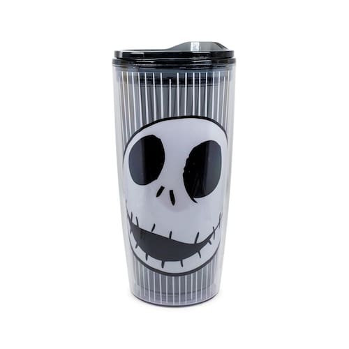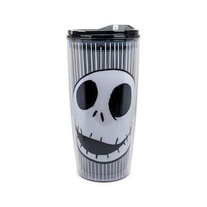 - A TODOS UM BOM AMIGO: Prepare seus ossos com um refresco fresco quando você tiver os heebie-jeebies. Você encontrará um padrão listrado no fundo do crânio sorridente de Jack Skellington, o próprio Rei da Abóbora, neste copo frio.