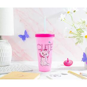 Dê ao seu drinkware uma classe extra leve um pouco da vida noturna de Paris para casa com este copo exclusivo que muda de cor com Marie de Os Aristogatos da Disney. Não basta pensar rosa, você precisa beber rosa. Felizmente, Marie, a gata atrevida, está aqui para mostrar como é feito. Neste copo de viagem que muda de cor, você verá o pigmento mudar do claro para o escuro enquanto despeja uma bebida fresca e refrescante. A linda gatinha com uma aparência satisfeita consigo mesma na ilustração, posando ao lado das palavras "Perfectly Cute". Aproveite a quantidade pura de refresco Marie está pronta para enfrentar o dia com estilo. Passe pela sua rotina da maneira mais elegante com este lindo copo de viagem. Projetado com plástico livre de BPA, sem toxinas, vem coberto com uma tampa removível e canudo reutilizável para quando você e os gatinhos estiverem em movimento. Faça de cada aventura pelas ruas de Paris um assunto frio com os cubos de gelo de plástico incluídos. Aproveite algumas das melhores coisas da vida com esta bebida oficialmente licenciada inspirada em Os Aristogatos da Disney. Instruções de cuidado: lavar à mão apenas, não pode ir à máquina de lavar louça, não é seguro