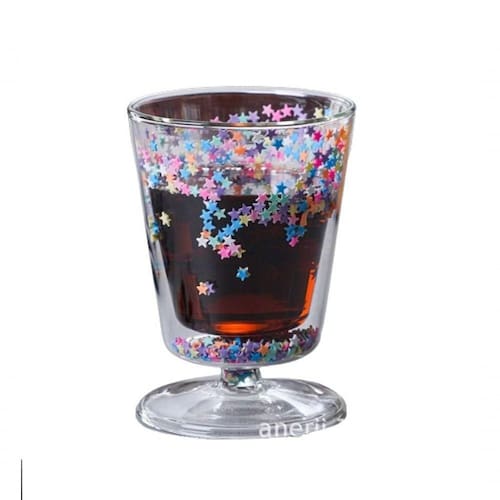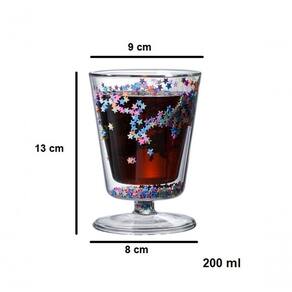 Copo, confeccionado artesanalmente em borossilicato soprado. Possui parede dupla que conserva a temperatura por mais tempo e evita a transpiração transpiração na parte extrema. indicado para bebidas quentes e frias.