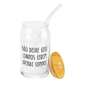 - Capacidade 470ml - Design Atraente: frases para inspirar seus dias. - Material eco: Vidro e tampa de bambu durável - Praticidade: Canudo de vidro incluído. - Versatilidade: Perfeito para sucos, smoothies e outras bebidas refrescantes. Marca: Não Informado