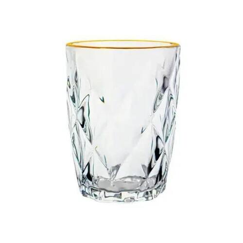Copo de Vidro Diamond Transparente Fio de Ouro 270ml - Lyor O Copo de vidro transparente da Lyor traz um design moderno Diamond Fio De Ouro de ótima resistência. Possui corpo todo decorado com losangos em relevo, charmosos e brilhantes como diamantes e bordas douradas que darão um toque ainda mais especial à sua decoração. Na composição de sua mesa posta as peças podem ocupar um lugar de destaque na decoração, já que são belíssimos e fáceis de combinar com outros utensílios para servir. Muito práticos, os copos servem variados tipos de bebidas, como água, sucos ou refrigerantes. Ean: 7899768052566