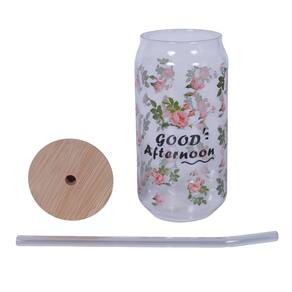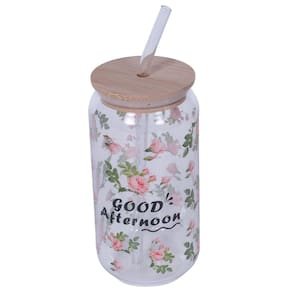 Copo De Vidro com Tampa E Canudo Flor Good Afternoon 600ml