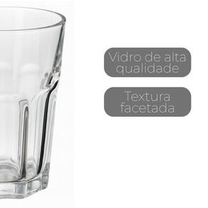 Copo de Vidro Facetado Transparente Água Suco 400ml Class Home