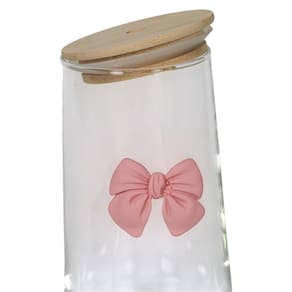 Detalhe: Gravata Borboleta (Laço) em relevo/adereço. Copo De Vidro Fofo Com Tampa E Canudo Laço De Coquette 500ml