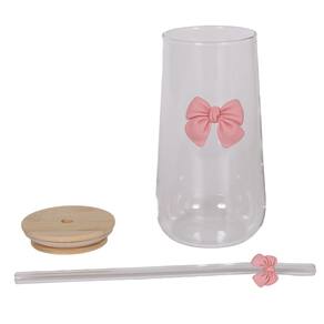 Copo De Vidro Fofo Com Tampa E Canudo Laço De Coquette 500ml