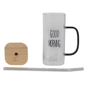 Copo de Vidro "Good Morning" 400ml com Tampa e Canudo – Estilo e Ritual