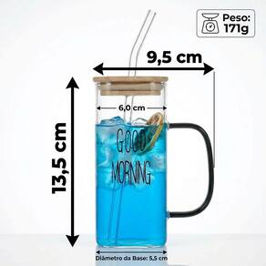 CONFORTO E ESTABILIDADE: O formato foi planejado para uma pegada ergonômica e confortável, além de possuir uma base estável para evitar acidentes na mesa. Copo De Vidro Good Morning com Tampa E Canudo Drinks 400ml