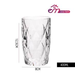 Copo de Vidro Resistente Diamond Transparente 400ml Em Casa Tem