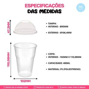 Contém: 60 unidades de copo 400ml Dimensões copo: Interno - 102mm x 110.08mm