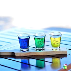 Detalhes Agora você pode se divertir tomando sua cachaça usando nossos Copos Dose de Cachaça, o KIT dose é composto por três copos e uma tábua de madeira. Características: Altura: 3,5 cm Largura: 5,5 cm Comprimento: 29 cm Capacidade: 60 ml Marca: Não Informado Ean: 7899790262506