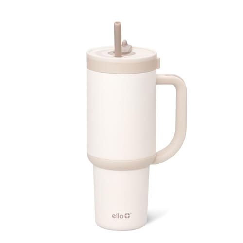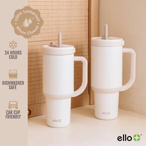Ello Copo Oasis de 850 g com alça e canudo retrátil | Copo de aço inoxidável isolado reutilizável 100% à prova de vazamento, presentes para adolescentes mulheres e homens | Mantém frio por 20 horas, - 100% à prova de vazamento: a inovadora tecnologia de canudo retrátil garante que você possa jogar seu copo em sua bolsa sem preocupações. - TECNOLOGIA DE CANUDO RETRATOR: Com um giro rápido do mostrador da tampa, o canudo se dobra perfeitamente, tornando a tampa à prova de vazamentos e mantendo a superfície de bebida limpa quando não estiver em uso. - Adequado para porta-copos: o design elegante e cônico se encaixa perfeitamente na maioria dos porta-copos, tornando-o ideal para hidratação em movimento. - Mantém frio por horas: mantenha as bebidas frias por até 20 horas ou quentes por até 4 horas, para que suas bebidas favoritas estejam sempre na temperatura perfeita. - Seguro para lava-louças: Projetado para conveniência, o copo Oasis é livre de BPA e pode ser lavado na lava-louças para facilitar a limpeza.