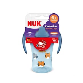 Copo Evolution Trainer Cup 230ml 6m+ Nuk Copo Evolution Treiner Cup, foi desenvolvido para facilitar a transição da mamadeira para o copo. Possuí alça idal para as mãos das crianças; Possuí poucas peças, facilitando a hora de limpar; Bebedor macio e confortável; Anti vazamento; Livre de BPA; Capacidade para 230ml; Recomendado para crianças acima de 6 meses. Medida da Embalagem: Peso: 100 g Altura: 8 cm Largura: 19 cm Comprimento: 17 cm Ean: 7896098813577