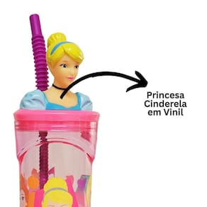 Copo Infantil Cinderela 3D com Canudo 360ml ? Princesas Disney