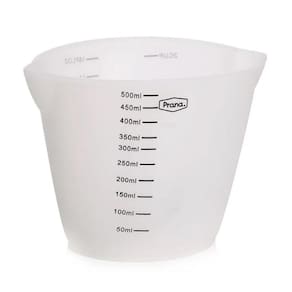 O Copo de medidas flexível da linha Gourmet da Prana forma um bico saliente ao ser apertado que direciona os líquidos com mais segurança e sem nenhuma sujeira.