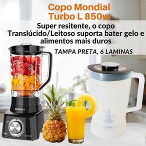 Copo jarra para liquidificador compatível com a marca mondial modelos turbo l 850w, l 900w translúcido/ leitoso com tampa preta não serve filtro.