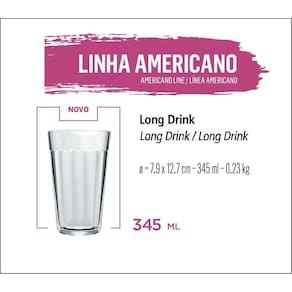 Copo long drink Copo Americano 06 Vidro 345ml Copos Cerveja