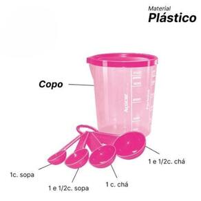Especificações: Modelo: Copo Graduado Com Tampa e Colher 400ml; Material: Plástico; Capacidade: 400ml; Acabamento: Rosa Translúcido; Marca: Não Informado Ean: 7890100422740