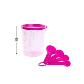 Copo Gradudado Medidor Plástico com Tampa Bico e Colheres Medidoras 400ml O Copo Graduado é ideal para você que precisa fazer receitas com medidas exatas e também para quem busca trazer mais beleza e elegância para sua cozinha. O copo possui medidas arroz, farinha, açúcar, feijão dentre outros alimentos. Perfeito para preparo de bolos e pães.