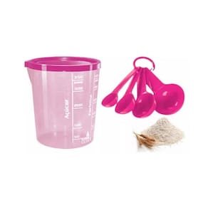 Especificações: Modelo: Copo Graduado Com Tampa e Colher 400ml; Material: Plástico; Capacidade: 400ml; Acabamento: Rosa Translúcido; Marca: Não Informado