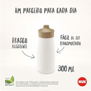 Ele possui Bico Sip com sistema antivazamentos, é super resistente a mordidas e foi desenvolvido com mais de 80% de materiais sustentáveis. Além disso, ele é fácil de higienizar e conta com tampa protetora higiênica para transporte com sistema de clique simples para abertura e fechamento.
