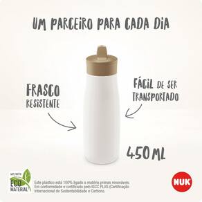 O Copo Mini-Me Flip da Nuk foi cuidadosamente projetado com um design ergonômico e inovador, utilizando mais de 80% de materiais sustentáveis, resultando em um produto amigo do meio ambiente que proporciona uma experiência confortável durante o uso.