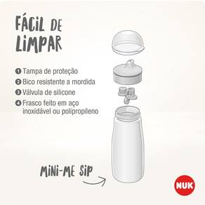 O Copo Mini-Me Sip Inox da Nuk foi cuidadosamente projetado com um design ergonômico e inovador em aço inoxidável de parede única, resistente e durável.