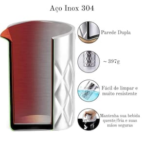 Copo Mixing Glass Japonês Inox Parede Dupla Jarra Diamante