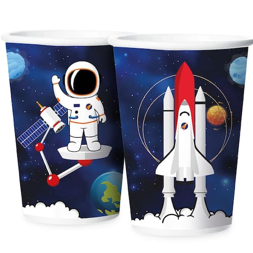 Copo Papel 180ml Espacial C/12 Regina. Aventure-se pelo universo e transforme sua festa em um verdadeiro espaço sideral, rodeado por planetas e estrelas. Seja um astronauta e embarque nessa aventura intergaláctica, viajando pelas galáxias e criando memórias que vão além das estrelas! Materiais produzidos com uma boa qualidade e cores impactantes, proporcione uma experiência única para seus convidados ao usar esses lindos copos.